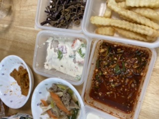 감자튀김,꽃맛살샐러드,고사리나물,연두부&양념장