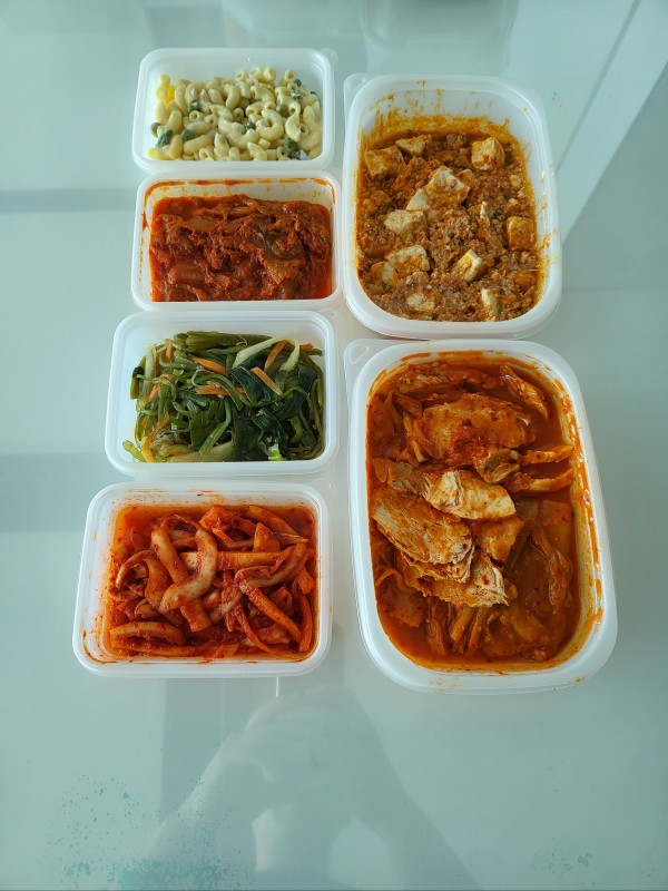 돈육김치찜,미역줄기볶음,김치참치볶음,도라지무침