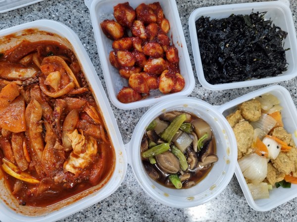 표고버섯꽈리고추조림,김자반볶음,볼어묵야채볶음,알마늘무침