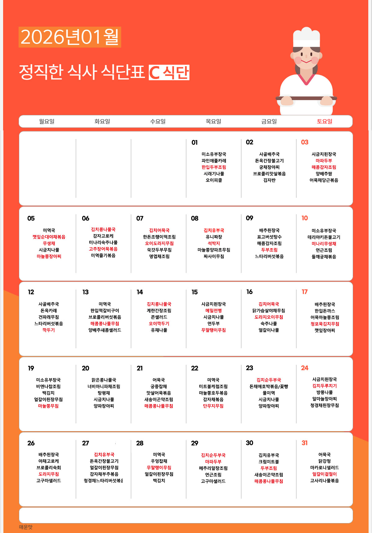 12월 1일(월) C식단 [무말랭이→콩나물무침]으로 대체됩니다